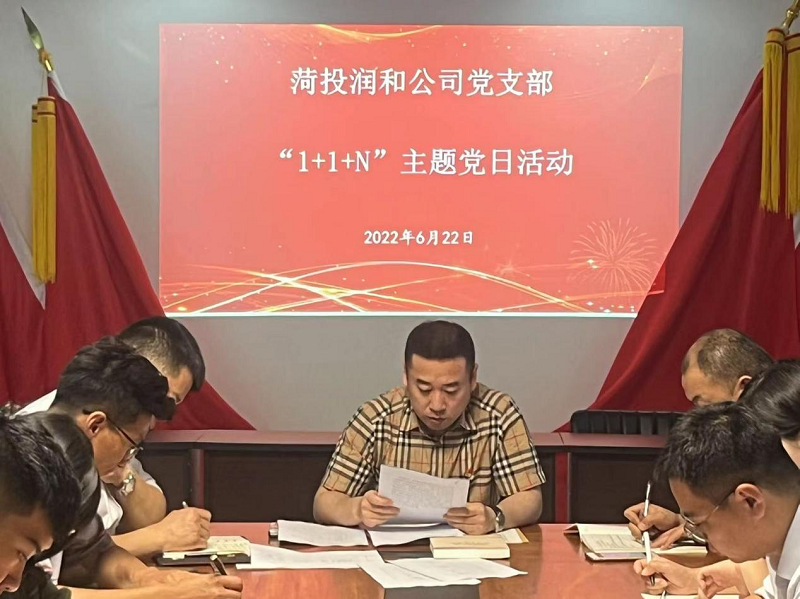 為深入貫徹落實(shí)習(xí)近平新時(shí)代中國(guó)特色社會(huì)主義思想,提高主題黨日實(shí)效,6月22日,菏投潤(rùn)和黨支部開(kāi)展“1+1+N”主題黨日活動(dòng),公司總經(jīng)理、黨支部書(shū)記邵峰主持活動(dòng),公司全體黨員參加。